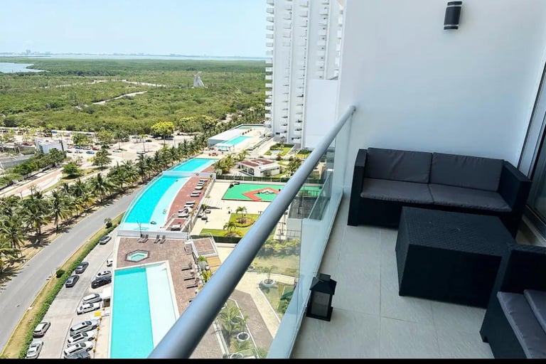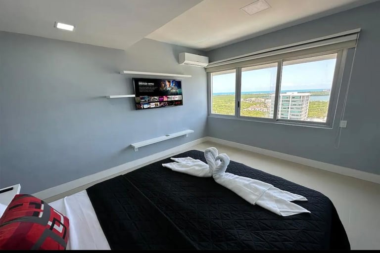Elegancia y Comodidad en el Corazón de Cancún, es lo que caracteriza nuestro departamento en la torre Rio, Ubicados en la vibrante Plaza Las Américas, nuestro departamento de la Torre Río es el refugio perfecto para quienes buscan una estancia placentera y sofisticada en Cancún. Este moderno complejo ofrece una combinación ideal de confort, estilo y conveniencia, convirtiéndolo en un lugar excepcional para vacacionar.