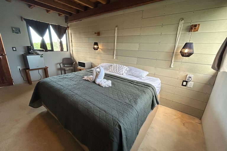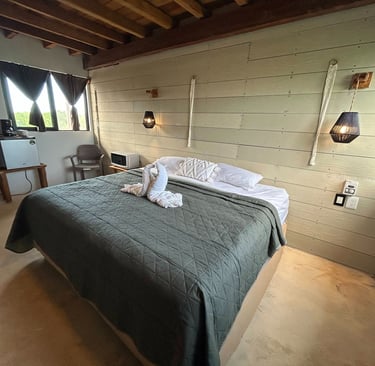 Diseño Natural: Las habitaciones están decoradas con materiales locales y sostenibles, creando un ambiente acogedor que se integra perfectamente con el entorno.